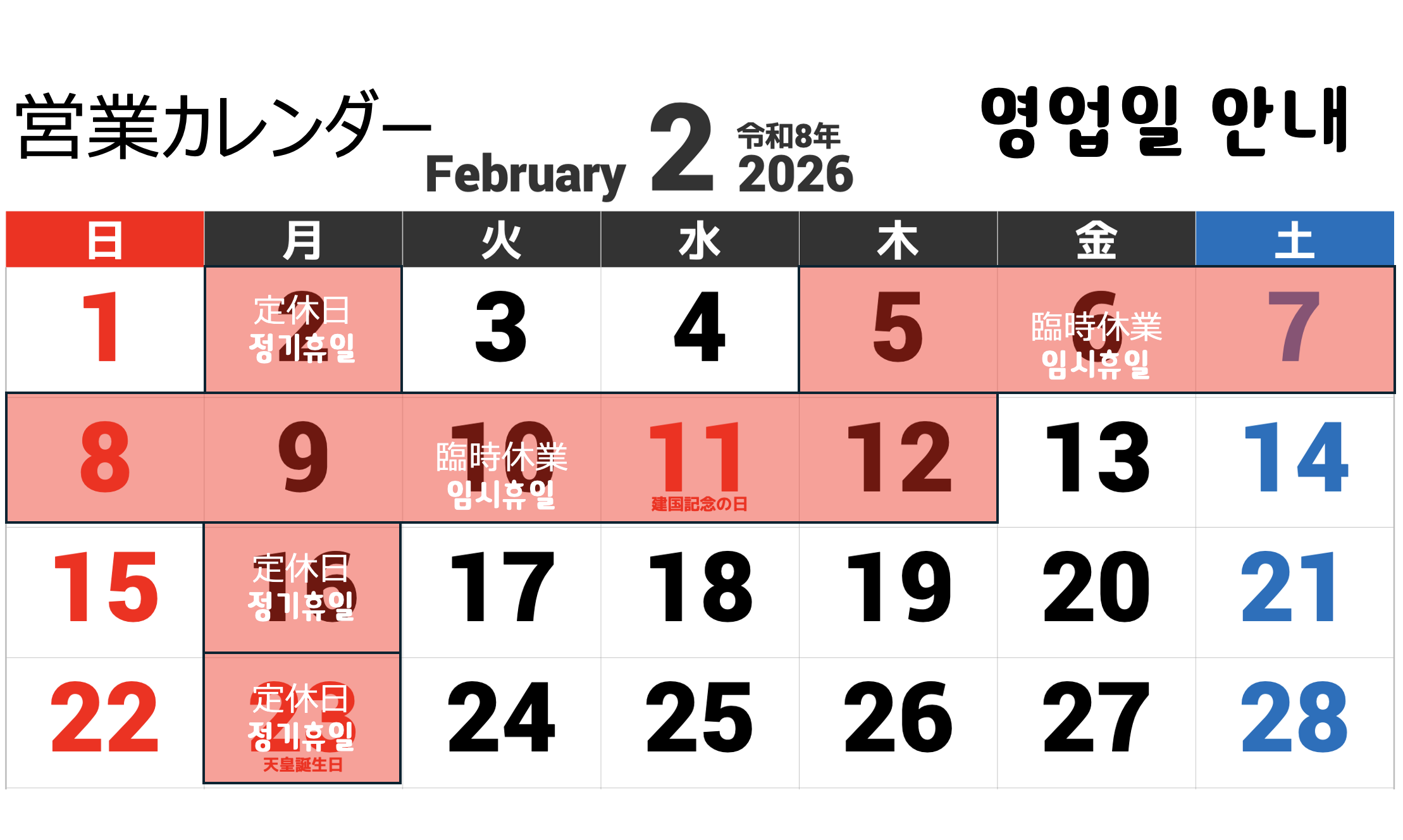 定休日:毎週月曜日